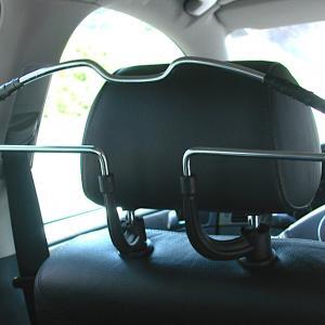 Der universell einsetzbare PKW-Kleiderbügel / Jackenhalter für Kopfstützen wird stabil und ganz einfach mittels praktischem Clip-System befestigt.