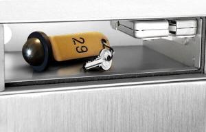 Schlüsselausgabegerät mit 6 Fächern für die sichere Aufbewahrung und kontrollierte Übergabe von Schlüsseln (auch mit klobigem Schlüsselbund) oder Schlüsselkarten. Autohäuser, Werkstätten, Autoverleiher, Fuhrparks oder Hotels und Vermieter von Ferienwohnungen bieten damit Kunden / Gästen einen komfortablen 24/7-Service.