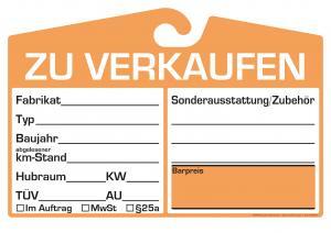 Einfache Preisauszeichnung, wahlweise mit neutralem Barpreis-Feld oder mit vorgedruckten Digitalzahlen, zum Einhängen am Innenspiegel oder auch zur Anbringung an der Scheiben-Innenseite mittels Saugnapf (nicht im Lieferumfang enthalten).
