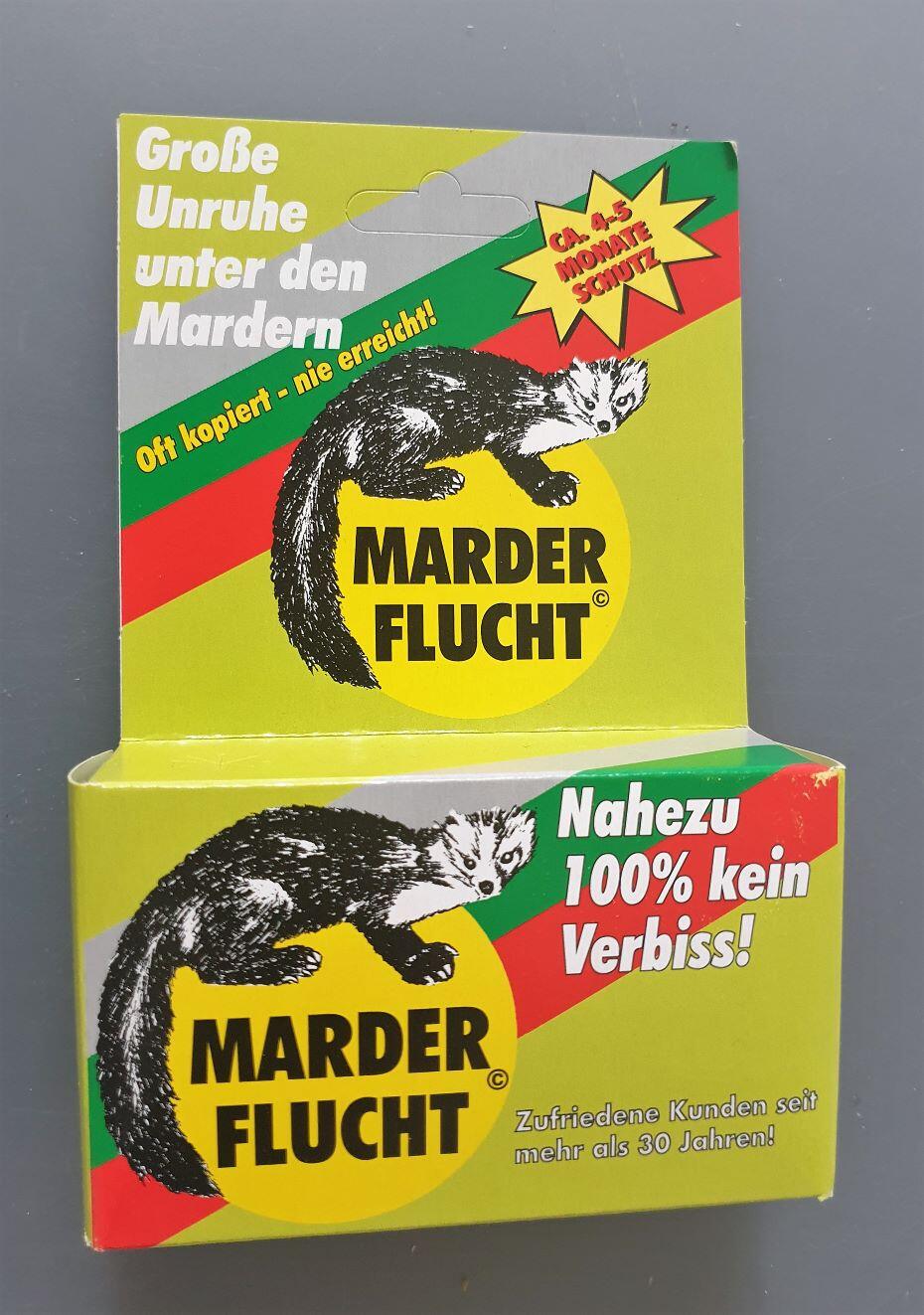 Mit unserem seit mehr als 30 Jahren Praxiserprobten Produkt MARDER FLUCHT ist keine aufwändige Montage nötig. Man nimmt das Netz aus dem Säckchen und hängt es in den Motorraum. Anwendung: 1) Eine professionelle gründliche Motorreinigung durchführen lassen (empfohlen!). 2) Ein Netz mit MarderFlucht Stäbchen im Motorraum an einer möglichst kühlen Stelle befestigen – fertig. Die MarderFlucht –Stäbchen nach ca. 3 bis 4 Monaten gegen neue austauschen. Keine Montagekosten,