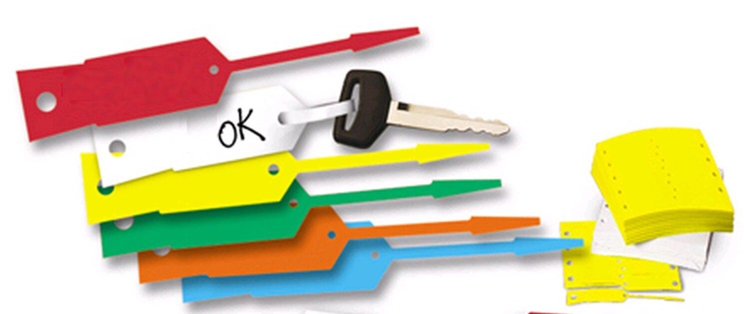 für die Kennzeichnung von Schlüsseln, Kleinteilen, Zubehör, Gepäck, etc, beidseitig mit allen Stiften beschriftbar, wiederverwendbar, langlebige einfach beschreibbare Vinyl-Oberfläche, gelocht zum einfachen Aufhängen am Haken; Maße 20x114mm; aus widerstandsfähigem Hartkunststoff; VPE = 1000 Stück.