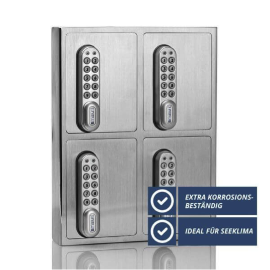 Edelstahl-Schlüsselsafe aus extra korrosionsbeständigem VA4 -Edelstahl mit Elektronikschloss und 4 separat steuerbaren Fächern