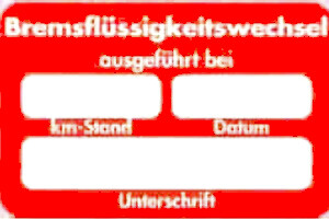 Kundendienstaufkleber „Bremsflüssigkeitswechsel ausgeführt bei“