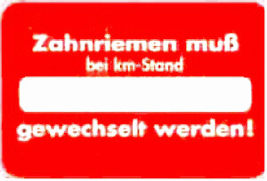 Kundendienstaufkleber „Zahnriemen muß bei km-Stand _ gewechselt werden“