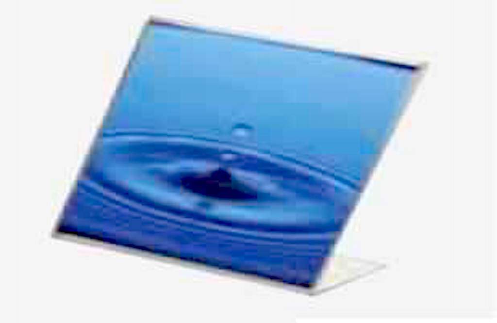 Glasklarer Prospekt-Aufsteller aus Acryl, in L-Form im Din A6 Querformat