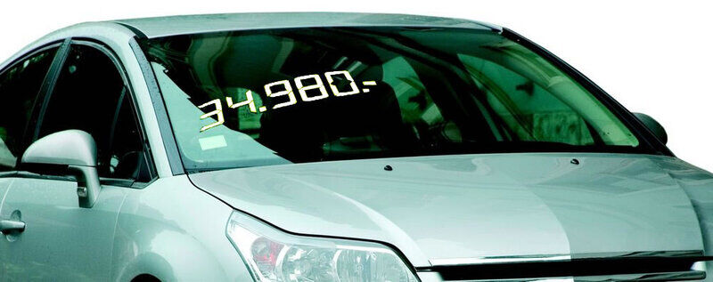 „Digitale“ Preisauszeichnung mit selbstklebender PVC Folie. Einfache Montage Ð Einfaches Abläsen: Sie erhalten die Preisziffern 88.888,-. Kleben Sie die Folie auf die Windschutzscheibe. Durch Entfernen (einfaches herausläsen) einzelner Elemente „gestalten“ Sie den entsprechenden Preis und machen ihn an der Scheibe bestens sichtbar. Fertig! Konturgeschnitten inkl. Übertragungspapier. Maße:Ê590 x 110 mm. 1 VPE = 10 Stück. In weiteren Farben und Gräßen erhältlich.Ê