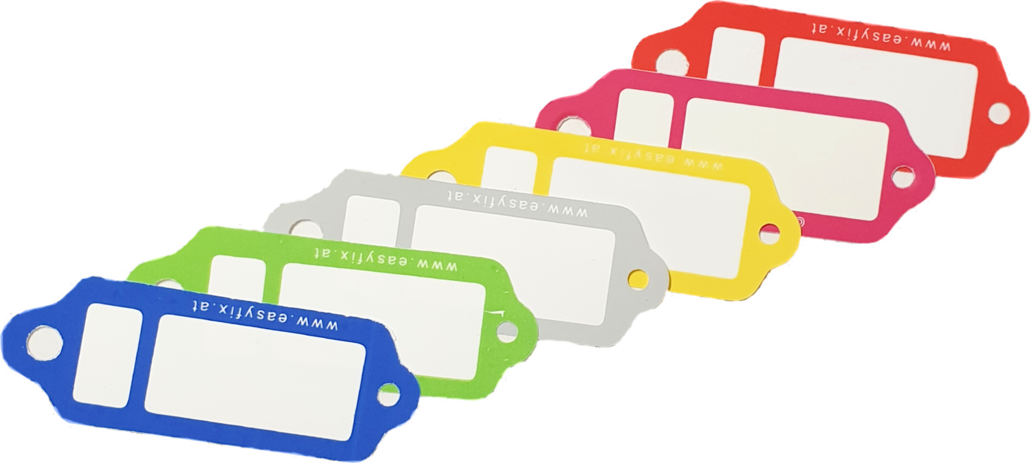 Beschreibbare, flexibel einsetzbare Anhänger zur Kennzeichnung von Schlüsseln, Zubehör, Kleinteilen, Koffern, etc.