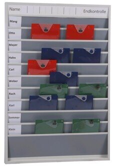 10 belegbare Schienen für DIN A4 Auftragskarten, Schutztaschen, etc.; Masse (B x H x T): 870 x 128,2 x 78 mm. Professionelle Organisationshilfe für Personaleinsatz, Disposition und Auftragsdokumentation; individuelle Beschriftung möglich. Planabweichungen sofort erkennbar. Engpässe und Leerlauf werden vermieden; reibungsloser Ablauf und Verkürzung der Standzeiten; Schienen aus robustem, pflegeleichtem Polypropylen, Rückwand aus Holz. Auch in weiteren Größen erhältlich.