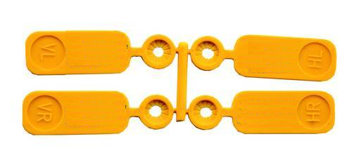 Praktische Clips für einfache und effiziente Organisation von Reifen, auf der Rückseite beschriftbar, HL, VL, HR, VR ist eingeprägt; 1 Set = 4 Clips, Preis / Set: 1,50 €; VPE = 100 Stück (25 Sets ‡ 4 Clips)