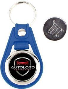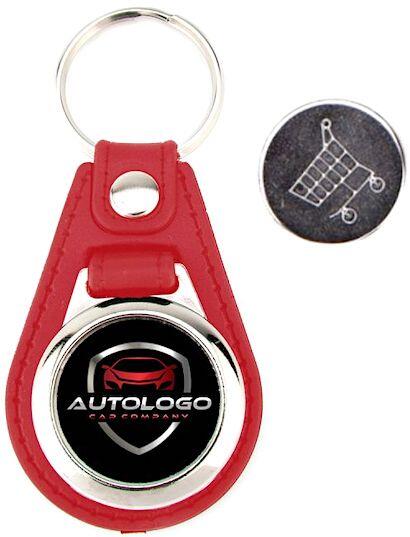Schlüsselanhänger Kunstleder und Metall mit Einkaufschip und Firmenaufdruck