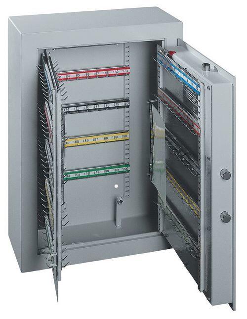 Sicherheitsstufen S1 (EN 14450) und A Einbruchschutz nach VDMA 24992;, Hakenleiste hähenverstellbar; Alle Modelle dieser Serie sind auch mit speziellen Hakenleisten für Autoschlüssel erhältlich.
