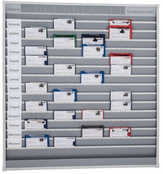 Die übersichtliche Organisationshilfe ermöglicht die effiziente Planung und Steuerung unterschiedlicher Betriebsabläufe, egal ob im Büro, im Personalbereich, in der Disposition oder in der Werkstatt und hilft Engpässe und Leerläufe zu vermeiden, Standzeiten zu verkürzen und optimalen Kundenservice zu bieten. Farbe: Grau, Material: hochwertiges, robustes Polypropylen (PP). Durchgehend befüllbare Planungsreihen mit vorgedrucktem Zeitschema, Namensschilder links außen, Wandmontage: Platzsparend und übersichtlich, Lieferung inkl. Montagematerial. EasyFix Werkstattplaner sind robust, mit schmutzabweisender Oberfläche und in unterschiedlichen Größen für A4 oder A5 und mit 6, 10 oder 15 Reihen und ab einer Breite von 1.580 mm mit zusätzlichem Ablagefach lieferbar. Die Werkstattplaner können beliebig aneinandergereiht werden. Die passenden Auftragsmappen / Stabile Schutztaschen bieten wir in unterschiedlichen Farben und Ausführungen, von Standard bis XXL mit extra großer Dehnfalte, wahlweise mit Klett- oder Magnetverschluss an. Zzgl. 30,00 € Frachtkostenanteil.